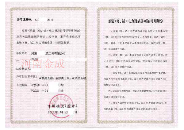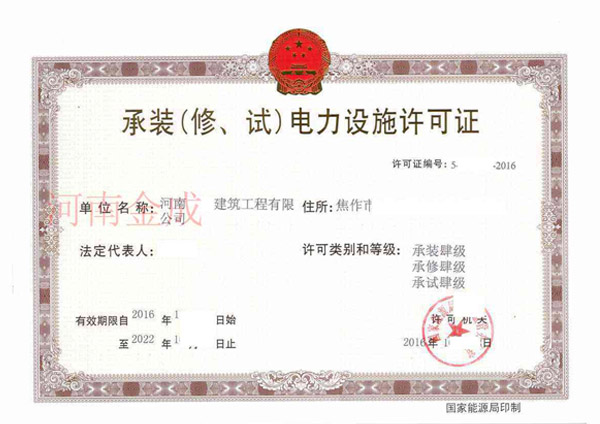 • 承裝(修、試)電力設施許可證
