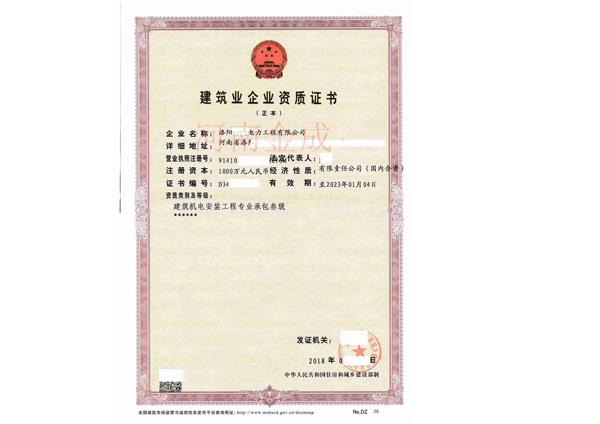 • 建筑業企業資質證書副